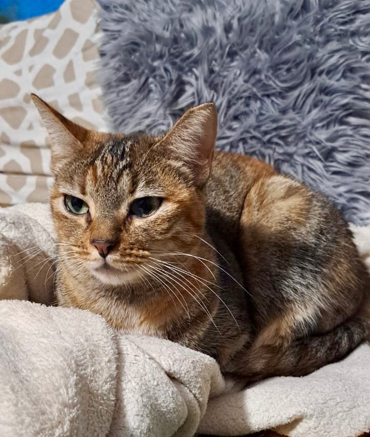 Emily llegó a la asociación junto a sus dos hermanas, las tres a punto de dar a luz. Eran mamis primerizas, no llegaban ni al año ellas mismas. Venían de un campo donde su antiguo dueño no las había castrado y, cuando llegó el momento de que nacieran los bebés, ya no las quiso. En la asociación les dimos la tranquilidad y el cuidado que necesitaban, y las dejamos criar a sus pequeños lo mejor que pudieron. Después, con mucho esfuerzo, les fuimos encontrando hogar. Sus dos hermanas ya han sido adoptadas… pero Emily sigue esperando. Emily es una gatita muy cariñosa, dócil y tranquila. Tiene ahora dos añitos, toda una vida por delante, y nos encantaría que pudiera compartirla con una familia como ya lo han hecho sus hermanas. ¿Te animas a ser su final feliz?