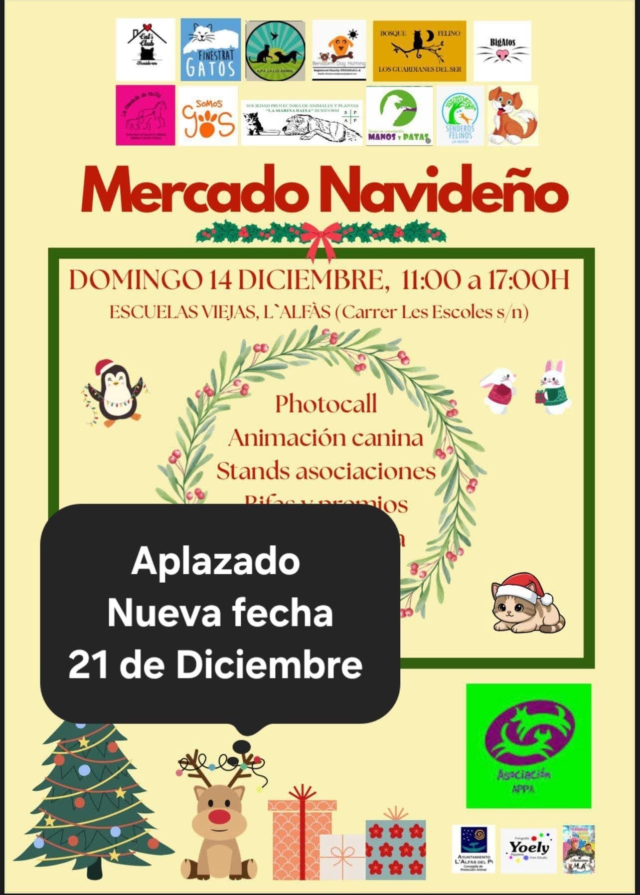 Este fin de semana tenemos doble evento, mañana estaremos en la Calle Gambo en Benidorm, y el domingo en el Mercado Navideño que @appalfas ha organizado. Estaremos de 11 a 17 en las Escuelas Viejas en alfaz de pi. Habrá música, comida, y varias asociaciones con nuestros puestos. Os esperamos😻