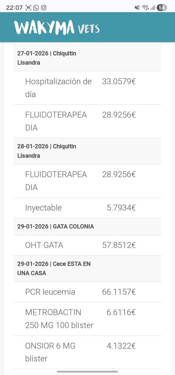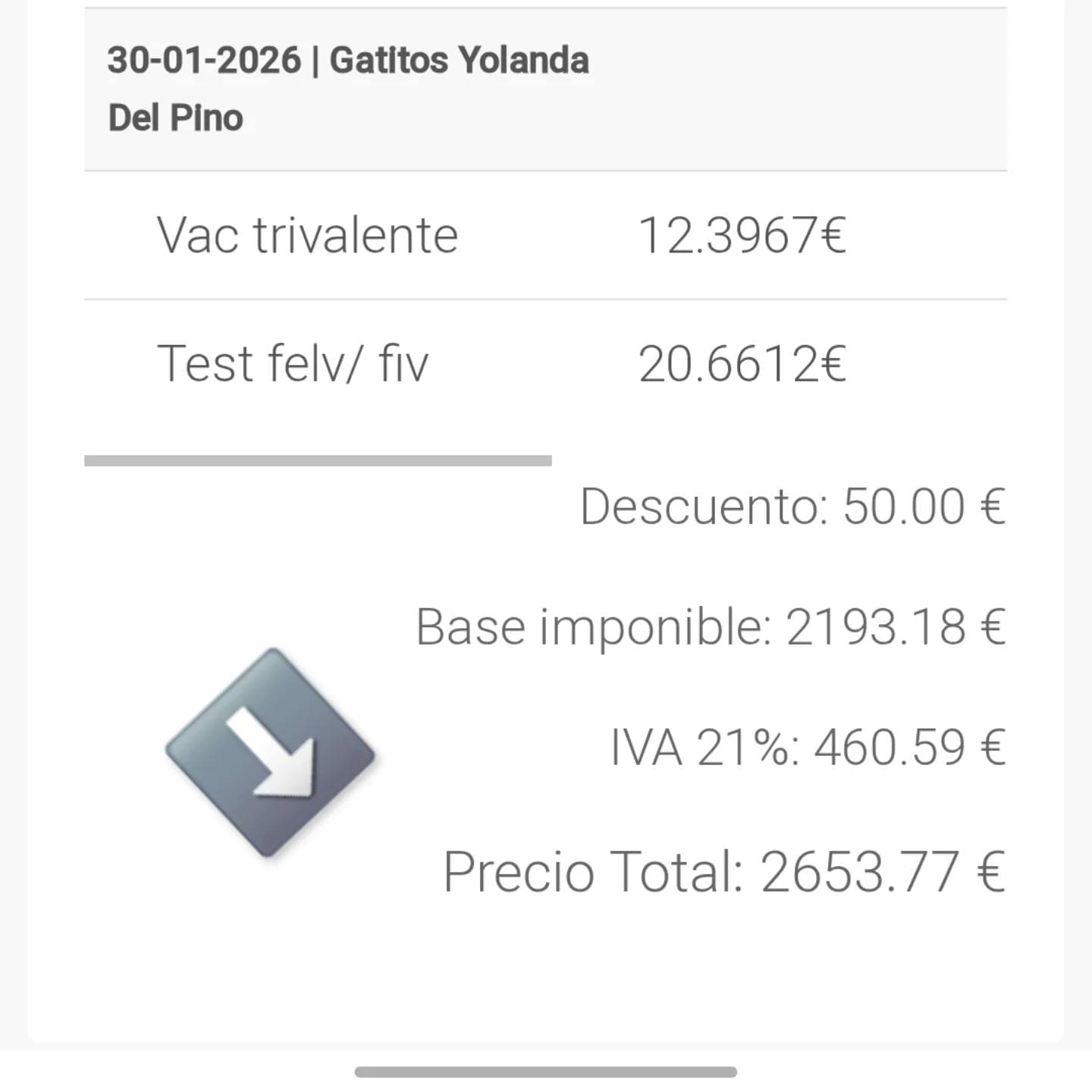 Y esto es solo una parte… todavía nos quedan pendientes las otras dos clínicas con las que trabajamos, más la comida especial que necesitan algunos, la arena, los productos de limpieza, los medicamentos de mantenimiento… Todo suma y este mes se nos ha hecho realmente imposible llegar a fin de mes.