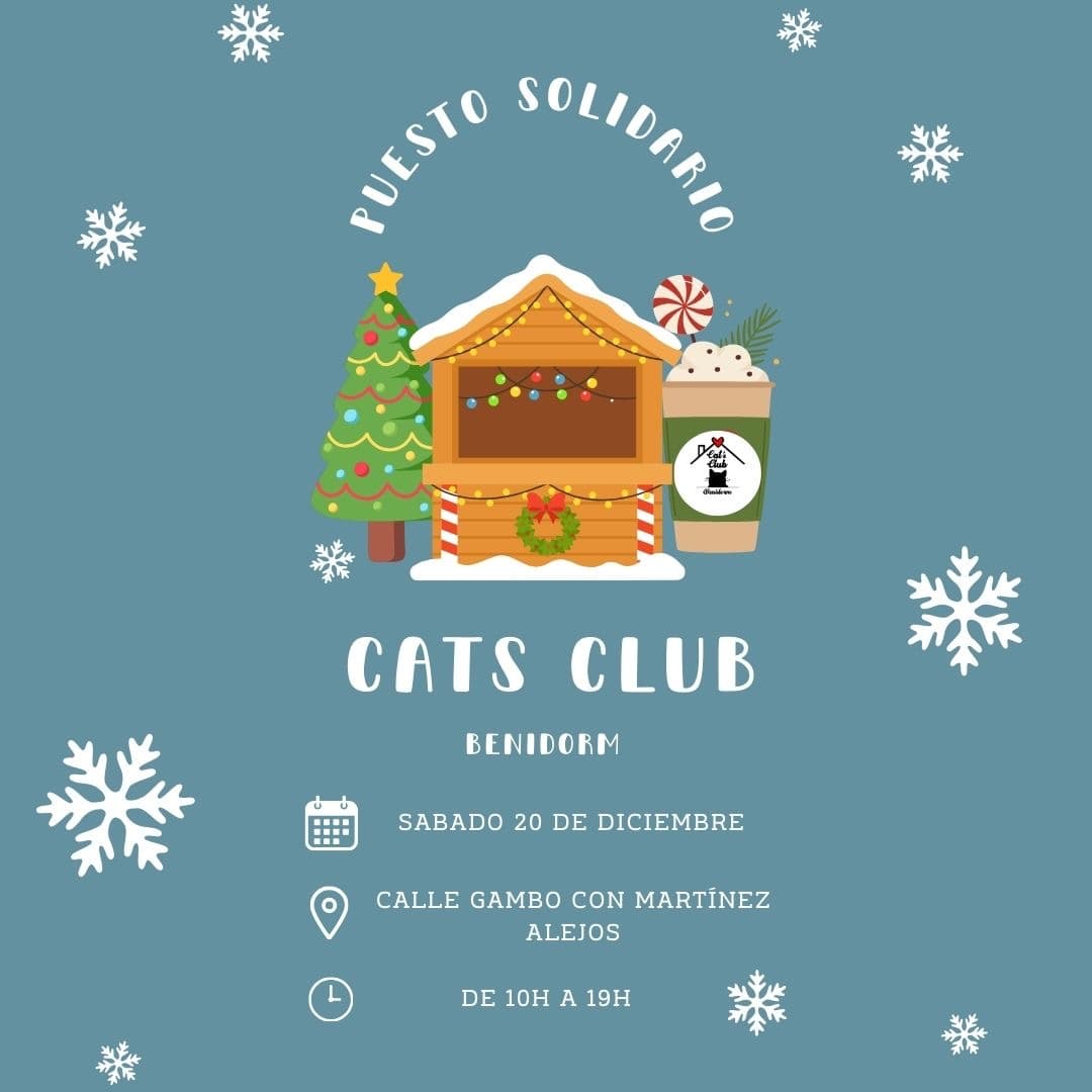 Nuestro Puesto Solidario navideño está lleno de detalles especiales y cositas bonitas, todo a la venta para apoyar a Cats Club Benidorm. Cada compra ayuda a cuidar, alimentar y proteger a nuestros gatos rescatados, dándoles calor, amor y una segunda oportunidad estas fiestas. Ven a visitarnos, colabora con una buena causa y convierte la magia de la Navidad en ayuda real para ellos 💖🐾✨