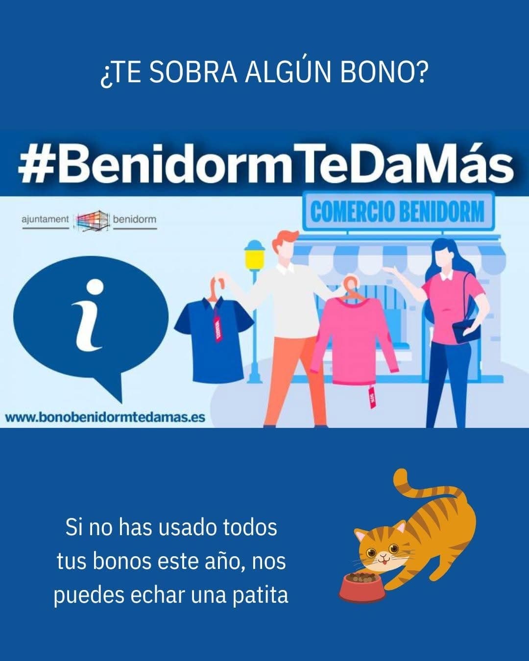 ¡Estamos en los últimos días para usar los Bonos Consumo del Ayuntamiento de Benidorm! 🧾⏳ Si aún no los has utilizado o te sobra alguno, recuerda que hay una tienda de animales adherida al programa donde pueden gastarse: 🐾 Surfing Animals - Av. de Xixo, 2, LOCAL 11, 03502 Benidorm, Alicante Si por un casual te queda algún bono sin usar… nos encantaría que pensaras en Cats Club Benidorm 🙏🐱 Con esos bonos podemos comprar comida blanda para los más delicados y arena, algo tan básico como necesario para que estén limpios, tranquilos y cuidados. Para ti puede ser “un bono que sobra”… Para ellos puede ser una semana con el cuenco lleno, un día sin molestias, una pequeña gran diferencia. 🥫✨ Gracias por ayudarnos a seguir cuidándolos, uno a uno, como se merecen. Si quieres donarlo, escríbenos por mensaje privado y te contamos cómo hacerlo.