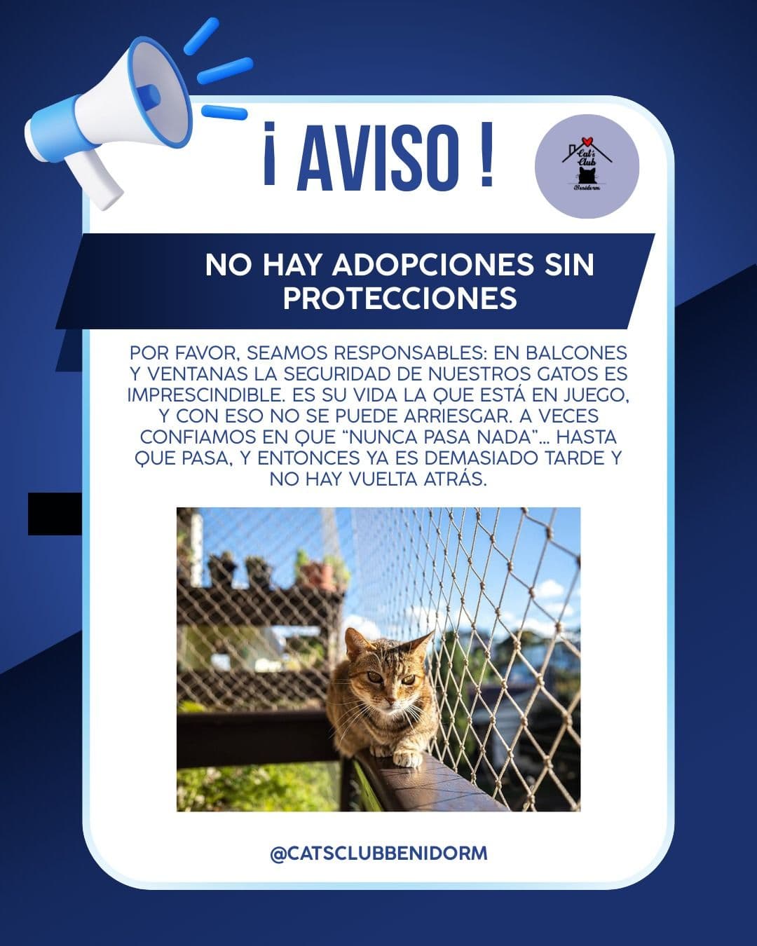 En Cats Club Benidorm cuidamos a cada gato como si fuera nuestro, por eso pedimos ventanas y balcones protegidos antes de adoptar. Puede parecer un detalle pequeño, pero para ellos marca la diferencia entre el riesgo y una vida larga y feliz. No es desconfianza, es amor y responsabilidad. 🐾💜